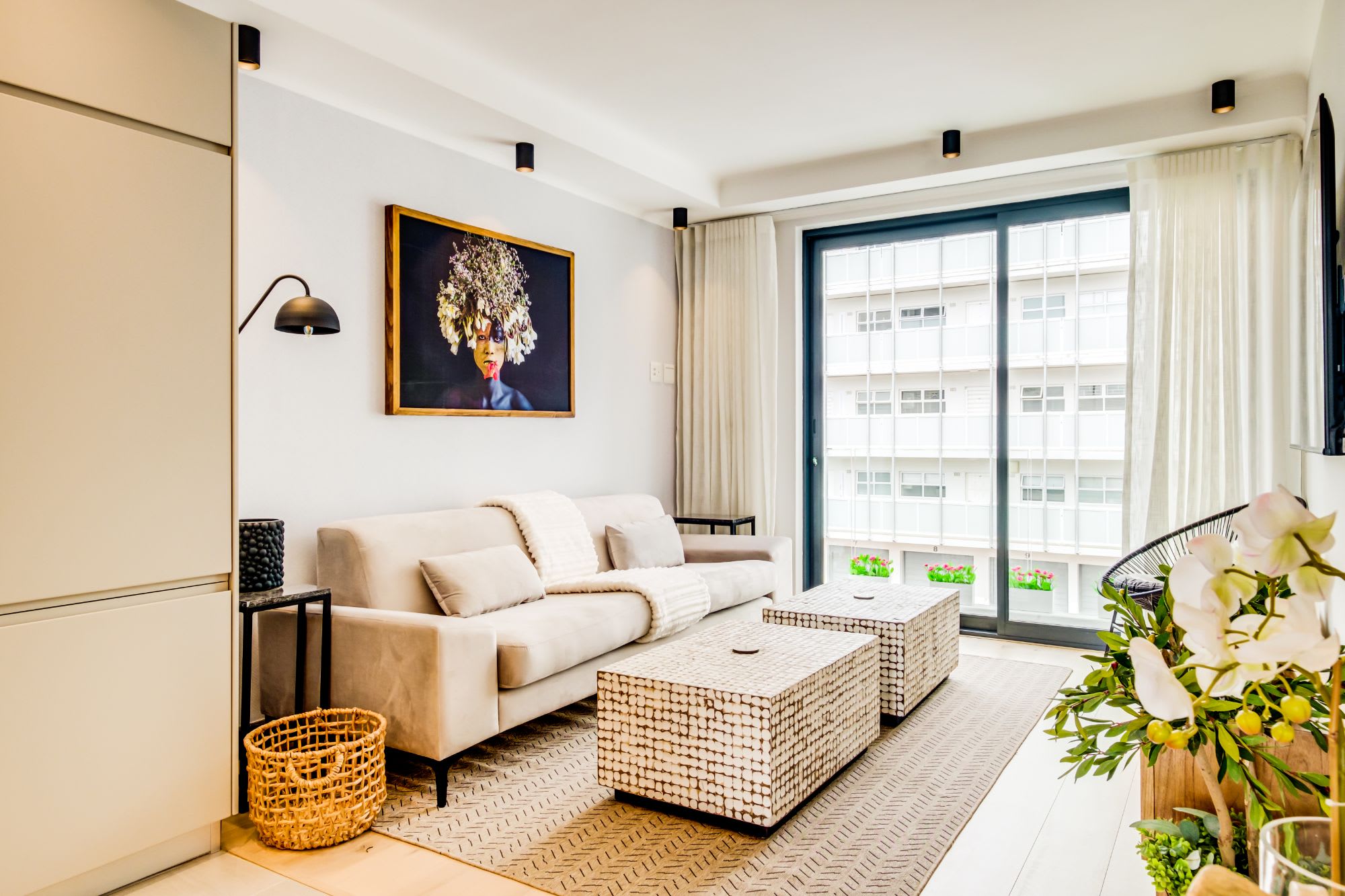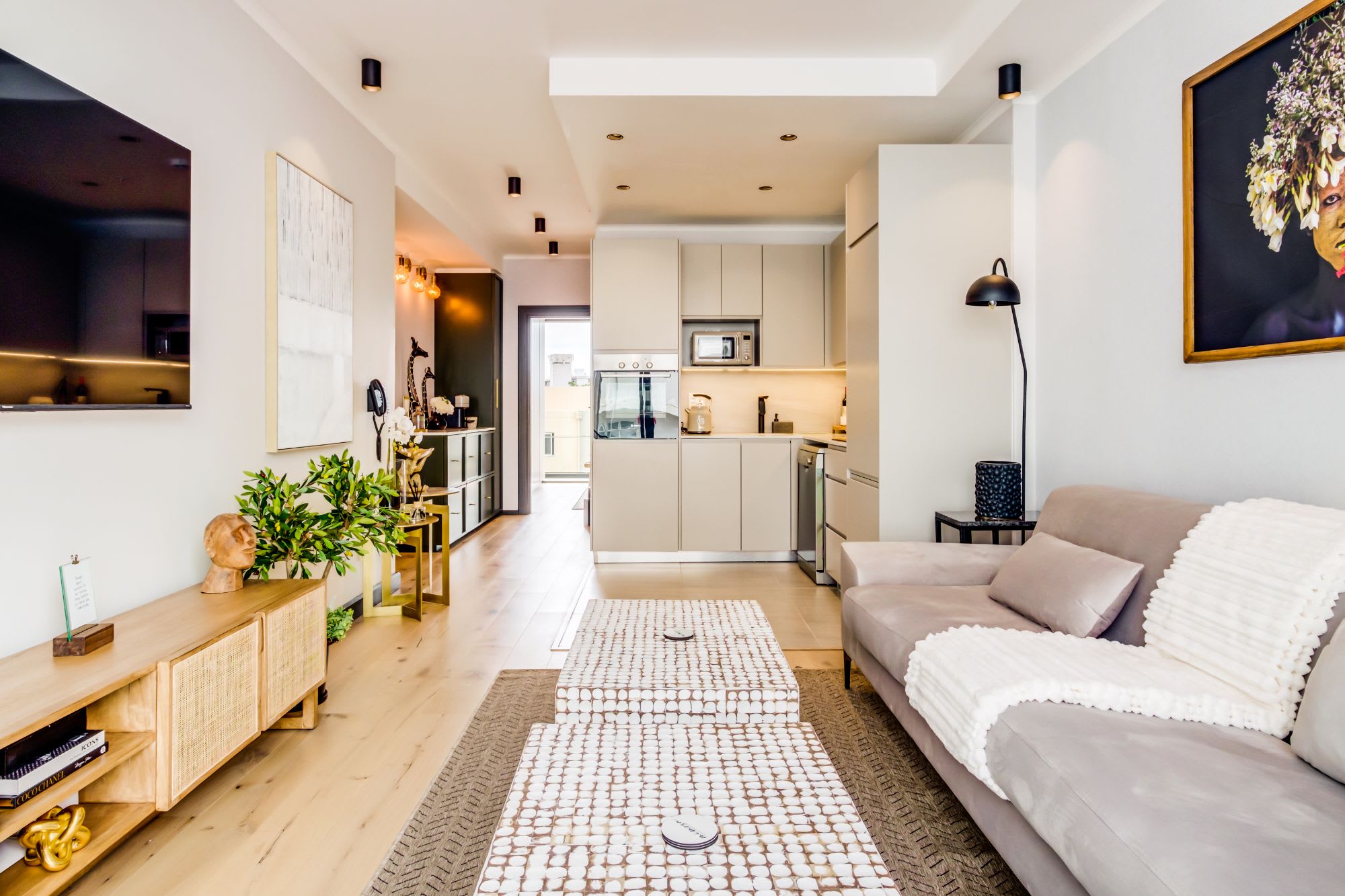 This immaculate apartment has a bright and sunny open plan living area, with a modern kitchen which is fitted with all the mod cons, including a Nespresso machine.