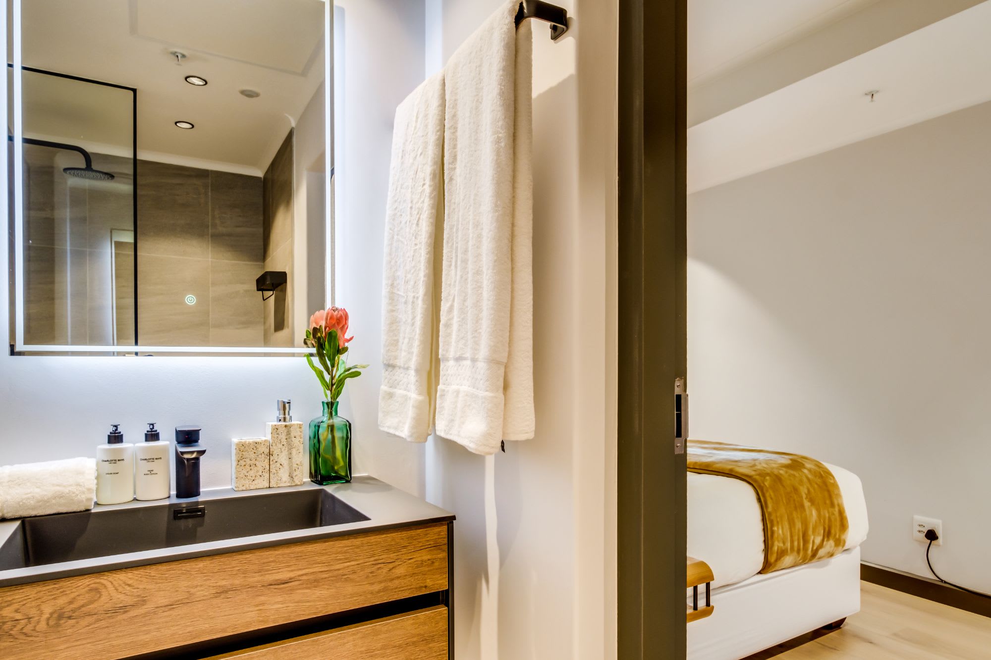 The spacious bedrooms are both en-suite with built-in cupboards. The master opens up to a balcony.