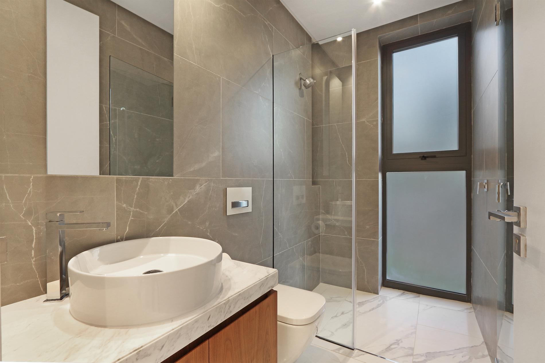 The Master bedroom encompasses the entire top floor giving a penthouse feel from the rest of the house. The second level of the villa has been designed to be the ultimate entertainer’s paradise. A collaboration of metals, wood, designer lights, limited edition furniture and art pieces are scattered throughout with pops of colour that reflect the uplifting energy of this area. This is complimented with the open plan living area which flows to the front sea facing terrace with unobstructed sea views over the Ocean complete with infinity pool and biofuel fireplace, not to mention a weather protected terrace that can be closed completely. Indoor/outdoor living is captured with both sides being able to open up completely and is further enhanced with the TV that acts as a mirror reflecting the space. The lower level consists of the two guest bedrooms.